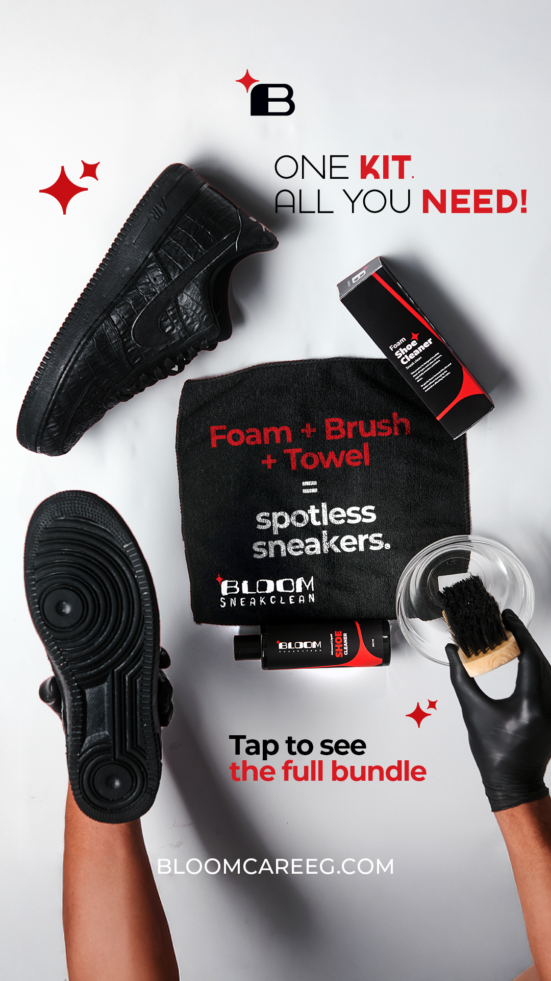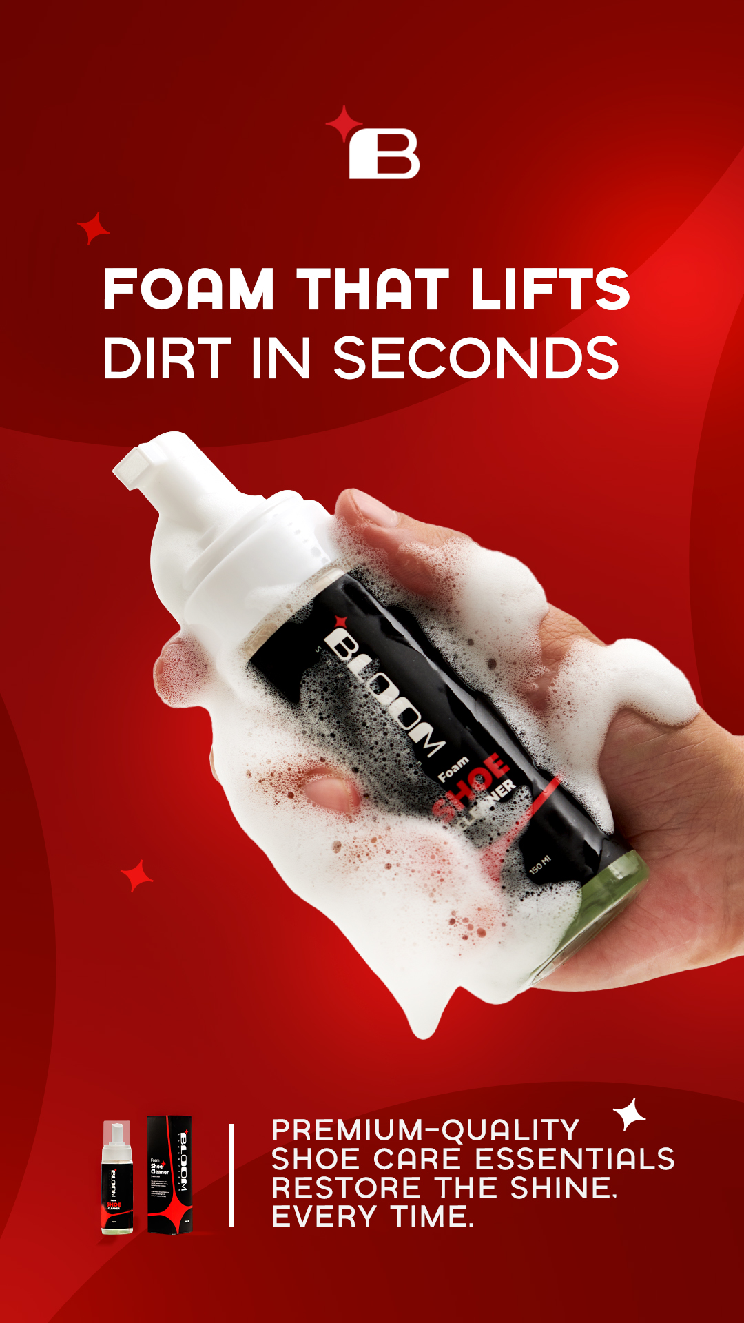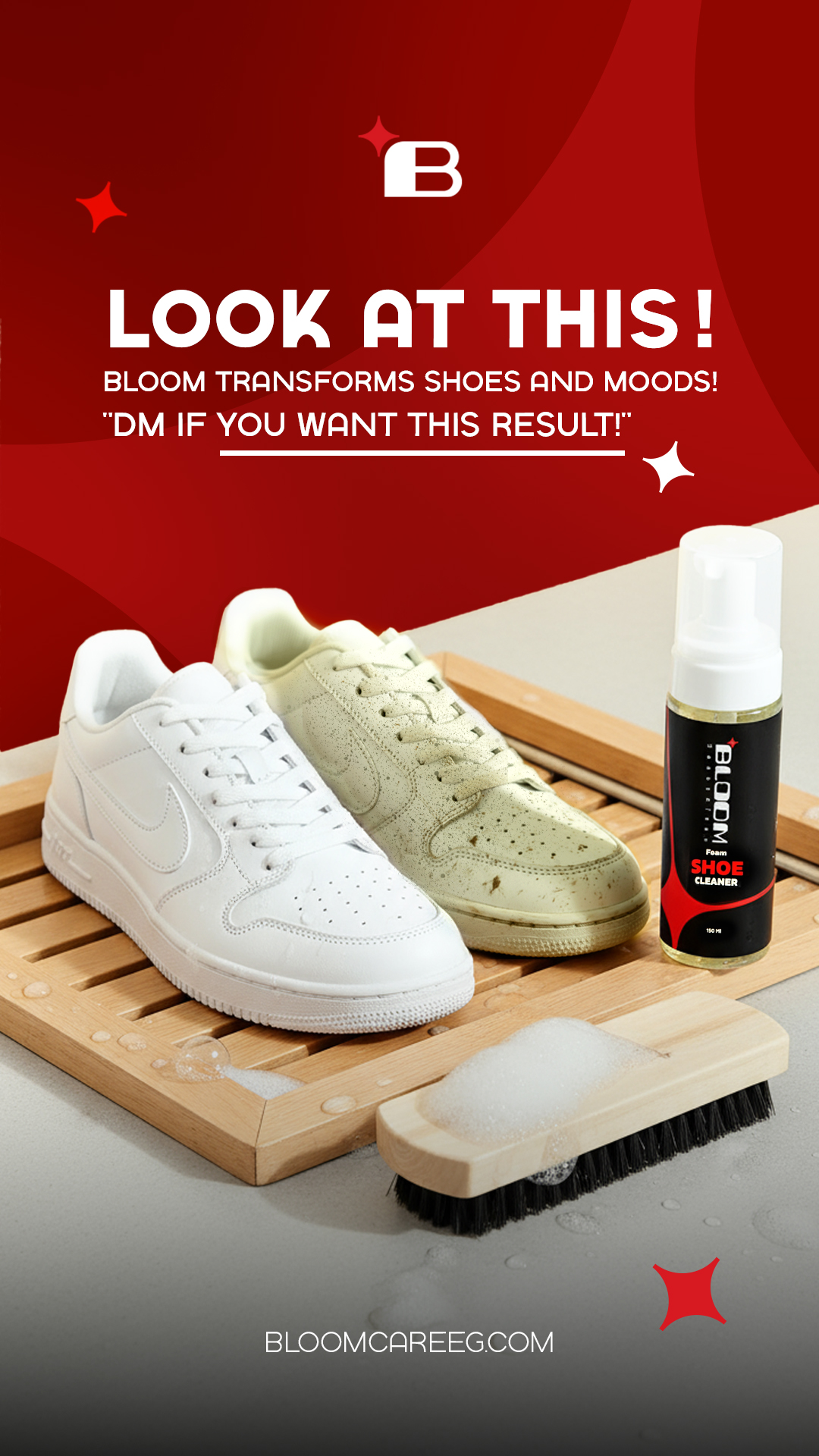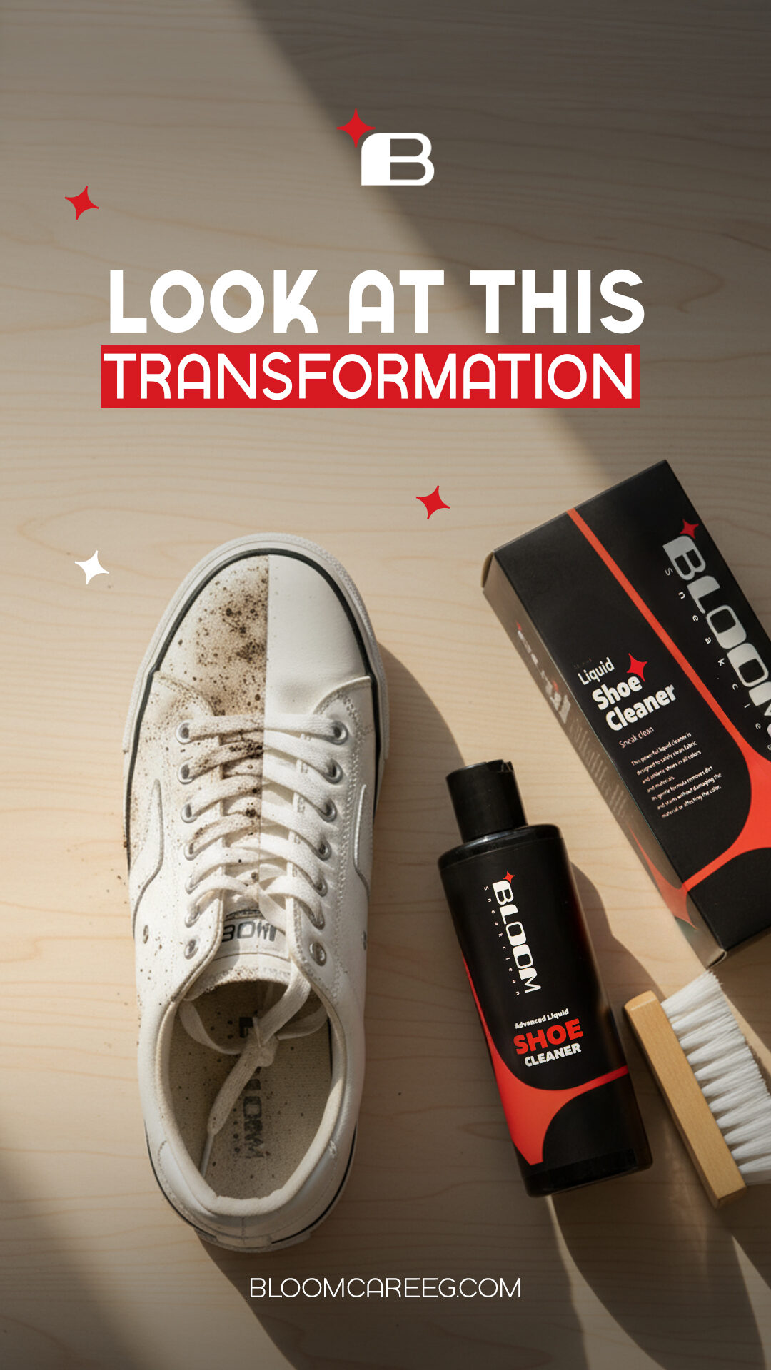 Bloom SERVICE: Social Media INDUSTRY: COUNTRY: Egypt 01. Brief A n effective shoe cleaning product that removes dirt and stains while being safe on all shoe materials. Available online across Egypt, offering an easy and convenient solution for shoe care. 02. Posts 03. Stories 04. Shooting 05. Branding 06. Videos